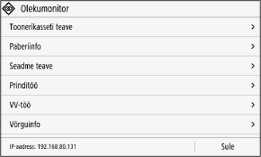 See kuvatakse, kui vajutate [Olekumonitor] [Avamenüü] kuval ja teistes kohtades.