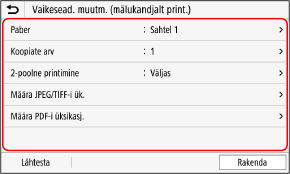 Funktsiooni Memory Media Print kuvatud vaikesätteid saate muuta juhtpaneelilt.