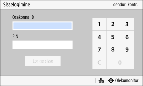 Kui osakonna ID haldus on seadistatud, kuvatakse järgmine sisselogimiskuva. Sisselogimiseks sisestage osakonna ID. Kui on seatud PIN-kood, sisestage see PIN-kood.