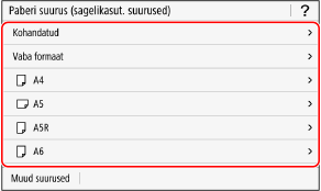Vajutage [Muud suurused] ja valige paberi formaat kuvatavast loendist.