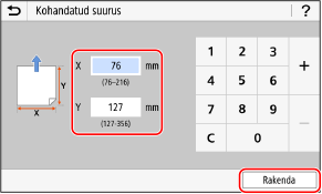 2 | Sisestage väärtused väljadele [X] ja [Y] ning vajutage [Rakenda]. Kui olete registreerinud sageli kasutatavad mittestandardsed formaadid, saate need üles leida, kui vajutate [S1] kuni [S3]. |