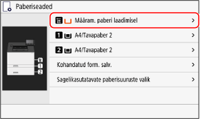 Kui paber on universaalalusele pandud, kuvatakse juhtpaneelil paberiformaadi ja -tüübi määramise kuva.