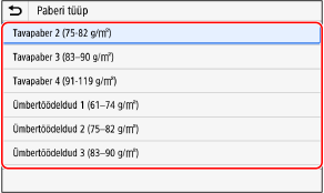 Valige paberisahtlisse asetatud paberi tüüp.