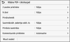 [Kommentaaride printimine] Määrake, kas soovite PDF-i kommentaare printida. Kui valite [Automaatne], prinditakse dokument koos kommentaaridega*1. *1 Ainult printimise kommentaarid PDF-failis. |
