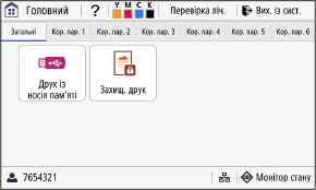 Стан апарата та дані для входу в систему постійно відображаються у верхній і нижній частинах екрана для швидкого перегляду та виконання операцій, якщо це потрібно.