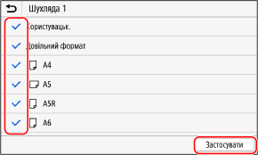 Зніміть прапорці для розмірів паперу, які потрібно приховати, і клацніть [Застосувати].