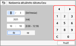 Klepnutím na čísla na numerických klávesoch zadáte hodnotu.