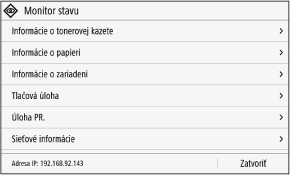 Táto obrazovka sa zobrazí, keď stlačíte tlačidlo [Monitor stavu] na obrazovke [Domov] a na iných miestach.