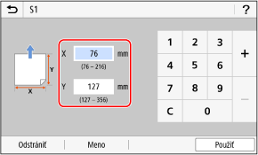 Veľkosti môžete zaregistrovať pri častom používaní papiera s neštandardnou veľkosťou. Papier môžete vyvolať na obrazovke s možnosťou zadávania veľkosti, čím predídete problémom so zadávaním veľkosti.