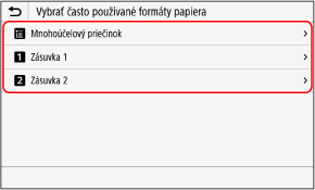 Zobrazí sa obrazovka [Vybrať často používané formáty papiera].
