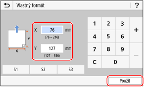Ak sú zaregistrované často používané neštandardné veľkosti, môžete tieto veľkosti vyvolať stlačením tlačidla [S1] až [S3].