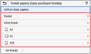 Stlačte položku [Iné formáty] a zo zobrazeného zoznamu vyberte veľkosť papiera.