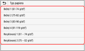 Vyberte typ papiera, ktorý chcete zaregistrovať.