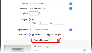 Z kontextovej ponuky možností tlače vyberte položku [Special Features].