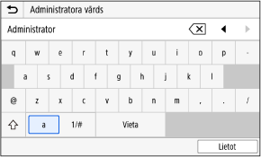 Aizmugure* Varat ievadīt rakstzīmes ar vadības paneļa starpniecību, kad iekārtai pievienota USB tastatūra.