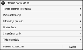 Šis ekrāns tiek parādīts, nospiežot [Statusa pārr.] ekrānā [Sākums] un citās atrašanās vietās.