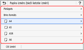 Nospiediet [Citi izmēri] un parādītajā sarakstā atlasiet papīra formātu.
