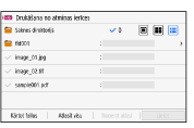 Lai atlasītu visus parādītos failus, ekrāna apakšā piespiediet [Atlasīt visu]. Ja tajā redzami gan PDF faili, gan attēli (JPEG vai TIFF faili), tiks parādīts ekrāns faila tipa atlasīšanai. Šajā ekrānā atlasiet faila tipu, kuru vēlaties drukāt.