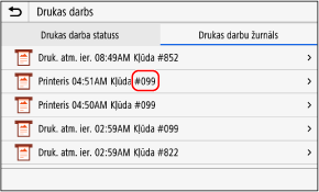 Ja nevar veikt drukāšanu vai saņemt i-faksu, vai rodas cita kļūda, darbu žurnālfailā tiek parādīts kļūdas kods (trīsciparu skaitlis, kas sākas ar “#”).