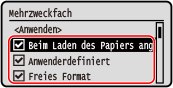 Deaktivieren Sie die Kontrollkästchen der Papierformate, die Sie ausblenden möchten, und drücken Sie [<Anwenden>]