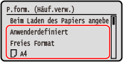 Wenn Papier im nicht standardmäßigen Format (benutzerdefiniertes Format) eingelegt wird