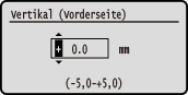 Geben Sie die Justagerichtung mit + und - an, und geben Sie die Justagebreite in Einheiten von 0,1 mm an.