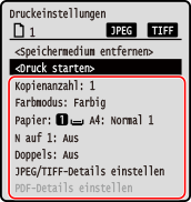 Der Einstellungsbildschirm für den Druck von Speichermedien wird angezeigt.