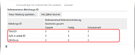 Sehen Sie sich unter [Seitensummen Abteilungs-ID] die Nutzung an.