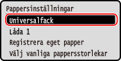 Om du alltid använder samma papper i multiutmatningsfacket kan du registrera pappersformat och papperstyp. Det förhindrar att skärmen för pappersinställningar visas vilket besparar dig arbetet med att ange inställningarna.