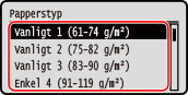 Om du ofta behöver byta papperstyp när du fyller på papper kan du ange [Fritt] för att spara tid genom att inte behöva ändra inställningen varje gång. Notera dock att med den här inställningen görs utskrifter även när inställningen för papperstyp i skrivardrivrutinen inte stämmer överens med den papperstyp som har fyllts på i enheten.