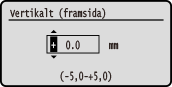 Ange justeringsriktningen med + och - och ange justeringsbredden i steg om 0,1 mm.
