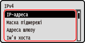 Можна переглянути параметри IP-адреси, установленої на апараті, як-от адресу IPv4 або IPv6.