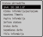 Ekrāna rādījuma maiņaVadības paneļa displeju var mainīt, mainot displeja valodu un vienības, kā arī rādot vai paslēpjot ziņojumus. [Rādīšanas iestatījumi]