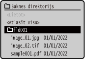 Ekrāns failu atlasīšanai no USB atmiņas ierīces