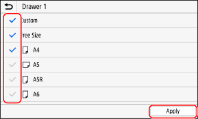 Paper sizes whose checkboxes are cleared are not displayed on the paper settings screen.