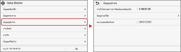 เมื่อคุณแตะที่ชื่อรายการหรือปุ่ม จะสามารถเลือกรายการนั้นได้ หน้าจอที่เลือกจะแสดงขึ้น หรือฟังก์ชันที่เลือกไว้จะทำงาน