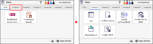 เมื่อคุณแตะที่แท็บ หน้าจอของแท็บที่เลือกไว้จะแสดงขึ้นมา