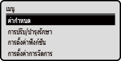 การเปลี่ยนการแสดงผลของหน้าจอคุณสามารถเปลี่ยนแปลงการแสดงผลของแผงควบคุมได้ เช่น การเปลี่ยนแปลงภาษาและหน่วยในการแสดงผล และแสดงหรือซ่อนข้อความ [การตั้งค่าการแสดงผล] คุณสามารถปรับสีของหน้าจอให้เป็นสีตรงกันข้าม และปรับความสว่างเพื่อทำให้หน้าจอง่ายต่อการมองเห็น [การช่วยสำหรับการเข้าถึง] การล้างการตั้งค่าอัตโนมัติตามค่าเริ่มต้น หากไม่มีการดำเนินงานใดๆ หลังจากผ่านไปสักระยะหนึ่ง การตั้งค่าที่กำหนดไว้บนหน้าจอจะถูกล้าง และหน้าจอ [Home] จะปรากฏขึ้นมา คุณสามารถเปลี่ยนแปลงระยะเวลาที่การตั้งค่าจะถูกล้าง และหน้าจอที่ต้องการให้ปรากฏขึ้นหลังจากนั้น [เวลารีเซ็ตอัตโนมัติ] [ฟังก์ชันหลังจากรีเซ็ตอัตโนมัติ] |