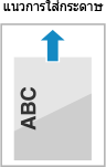 คุณสามารถกำหนดการตั้งค่าเพื่อให้การวางแนวกระดาษที่จะใส่และด้านที่จะพิมพ์ไม่เปลี่ยนแปลง ขึ้นอยู่กับว่าคุณต้องการพิมพ์ด้านเดียวหรือทั้งสองด้าน เมื่อกำหนดค่านี้แล้ว ให้ใส่กระดาษโดยใช้วิธีการพิมพ์ทั้ง 2 ด้าน [สลับวิธีการป้อนกระดาษ] |