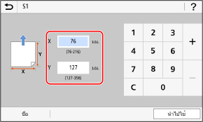 คุณสามารถลงทะเบียนขนาดกระดาษเมื่อใช้กระดาษที่ไม่ใช่ขนาดมาตรฐานบางขนาดบ่อยๆ คุณสามารถเรียกใช้กระดาษในหน้าจอป้อนขนาด ซึ่งจะช่วยให้คุณไม่ต้องยุ่งยากในการใส่ขนาด