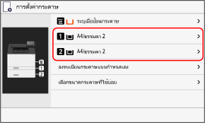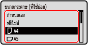 เลือกขนาดกระดาษที่ใส่ไว้ในถาดใส่กระดาษ