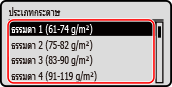 เลือกประเภทของกระดาษที่ใส่ไว้ในถาดใส่กระดาษ
