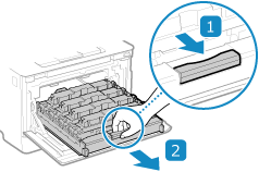ดึงตลับผงหมึกออกมาจากเครื่องในแนวตรง
