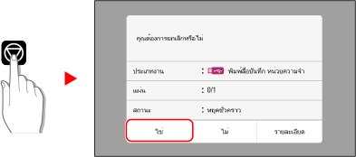 ทำตามคำแนะนำบนหน้าจอเพื่อยกเลิกการพิมพ์