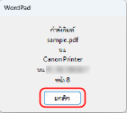 หากหน้าจอข้างต้นไม่แสดงขึ้นมา ให้ดับเบิลคลิกที่ไอคอนเครื่องพิมพ์ในพื้นที่แจ้งให้ทราบของ Windows แล้วเลือกเอกสารที่จะยกเลิก แล้วคลิกขวาที่
