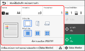 เมื่อต้องการพิมพ์แบบขาวดำ ให้กด [เริ่ม ขาวดำ] เมื่อต้องการพิมพ์แบบสี ให้กด [เริ่ม สี]