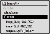 หน้าจอ [Home]ไฟล์และโฟลเดอร์ของอุปกรณ์หน่วยความจำ USB จะแสดงขึ้นมา