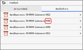 หากไม่สามารถพิมพ์ ไม่สามารถรับ I-Fax หรือมีข้อผิดพลาดอื่นเกิดขึ้น รหัสข้อผิดพลาด (หมายเลขสามหลักที่ขึ้นต้นด้วย "#") จะแสดงในรายการบันทึกงาน