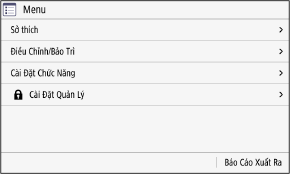 Màn hình này được hiển thị khi bạn nhấn [Menu] trên màn hình [Home]. Sử dụng màn hình này để cấu hình các cài đặt khác nhau của máy.