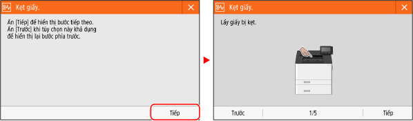 Thông báo được hiển thị trên màn hình khi xảy ra lỗi và máy hết giấy hoặc mực trong hộp mực.